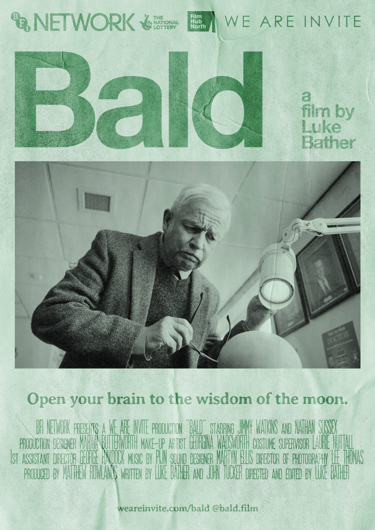 Bald is a heartwarming short film about how the world’s baldest man accidentally starts a moon-worshipping cult in a working men’s club in Wales. It’s based on the comic of the same name written by John Tucker (who co-wrote the script). It’s supported by BFI Network and produced by We Are Invite. Full credits below.